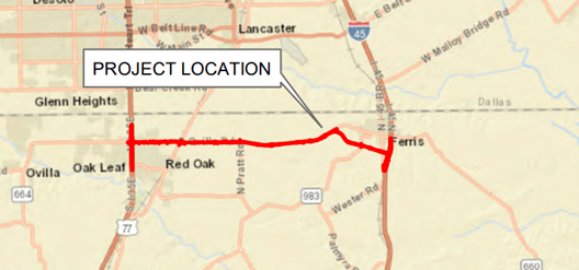 TxDOT will be making major improvements to FM 664 in Ellis County. The changes to the Ellis County roadway are occurring as two distinct TxDOT projects, although both are following similar timelines. The more expansive of the two projects is TxDOT’s plans for the segment of FM 664 from IH 35E in Red Oak to IH 45 south in Ferris.