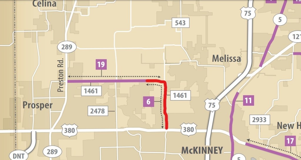 The Texas Department of Transportation (TxDOT) will be reconstructing and widening FM 1461 from SH 289 to CR 166 within the cities of Celina, McKinney, and Proper in Collin County. The currently right of way (ROW) is 90 feet wide while the proposed ROW is 172 feet wide. It is estimated that an approximate 100 parcels will be affected by this ROW expansion. The project has completed its environmental assessment, and is now in the process of acquiring the necessary ROW. Construction is anticipated to begin in 2025.