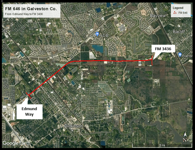 The Texas Department of Transportation (TxDOT) is proposing design modifications and additional right-of-way (ROW) needs along FM 464 from Edmund Way to FM 3436 in Galveston County. The proposed project includes accommodating storm water detention ponds and improving access roadways at the proposed overpass at the railroad crossing. According to TxDOT’s project page, approximately 20 acres of proposed right-of-way (ROW) will be acquired across the project’s total length of 4.4 miles. TxDOT hosted a public meeting that was posted as a pre-recorded presentation on Thursday, February 15, 2022. According to that meeting, the next steps would be to update and finalize the environmental studies, design and ROW acquisition.